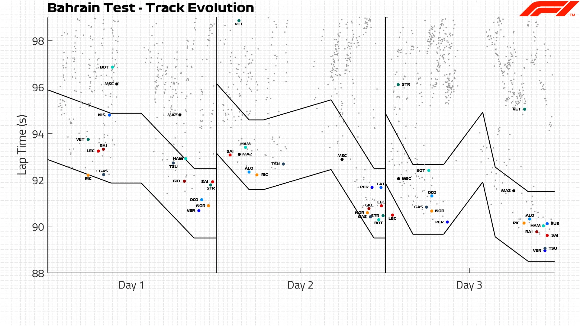 And then on day three, as the ‘Driver Best Laps & Track Evolution’ graph shows, Leclerc did a lap very early in the morning that was better than expected for the time of day. They certainly won’t be title contenders or a genuine threat for a race win, but it seems like they will be a stronger force in the midfield at the very least.