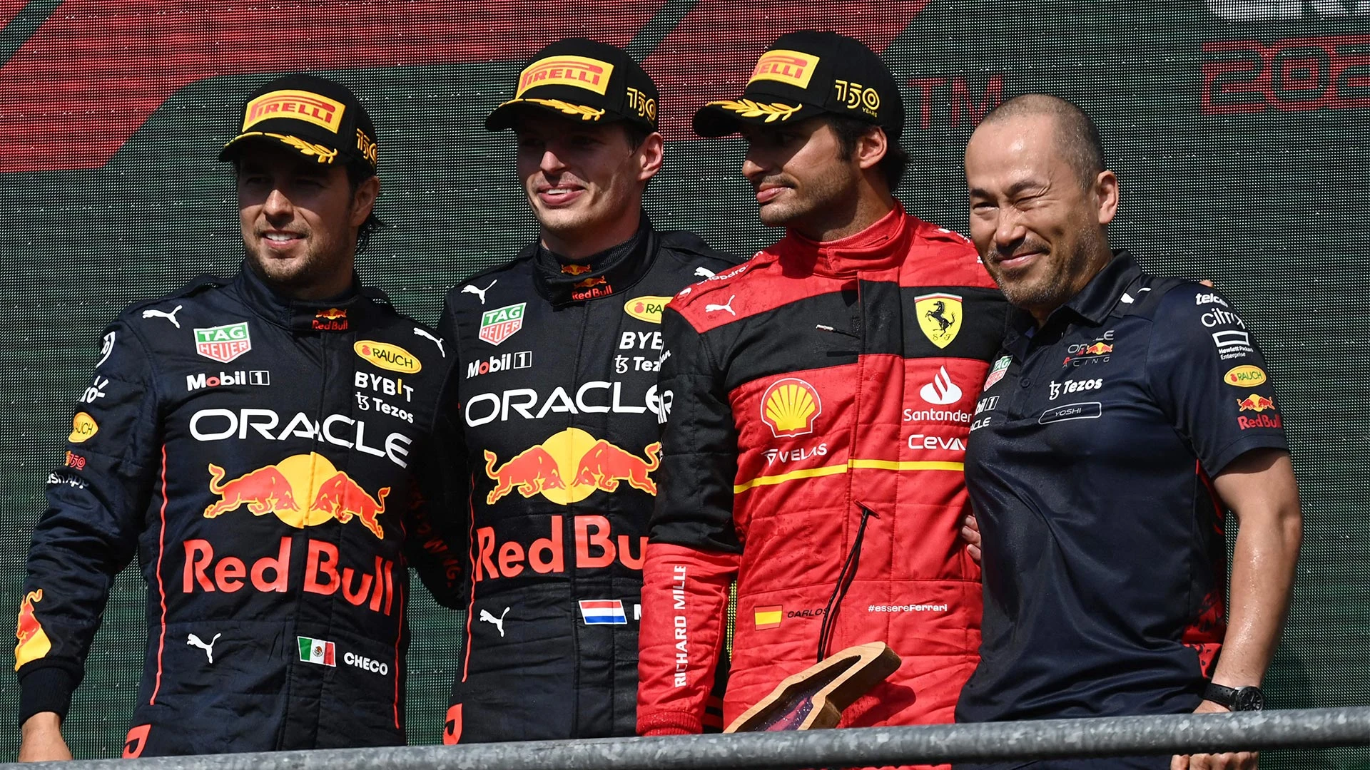 1 – Max VERSTAPPEN (Red Bull Racing), 2 – Sergio PÉREZ (Red Bull Racing), 3 – Carlos SAINZ (Ferrari)
