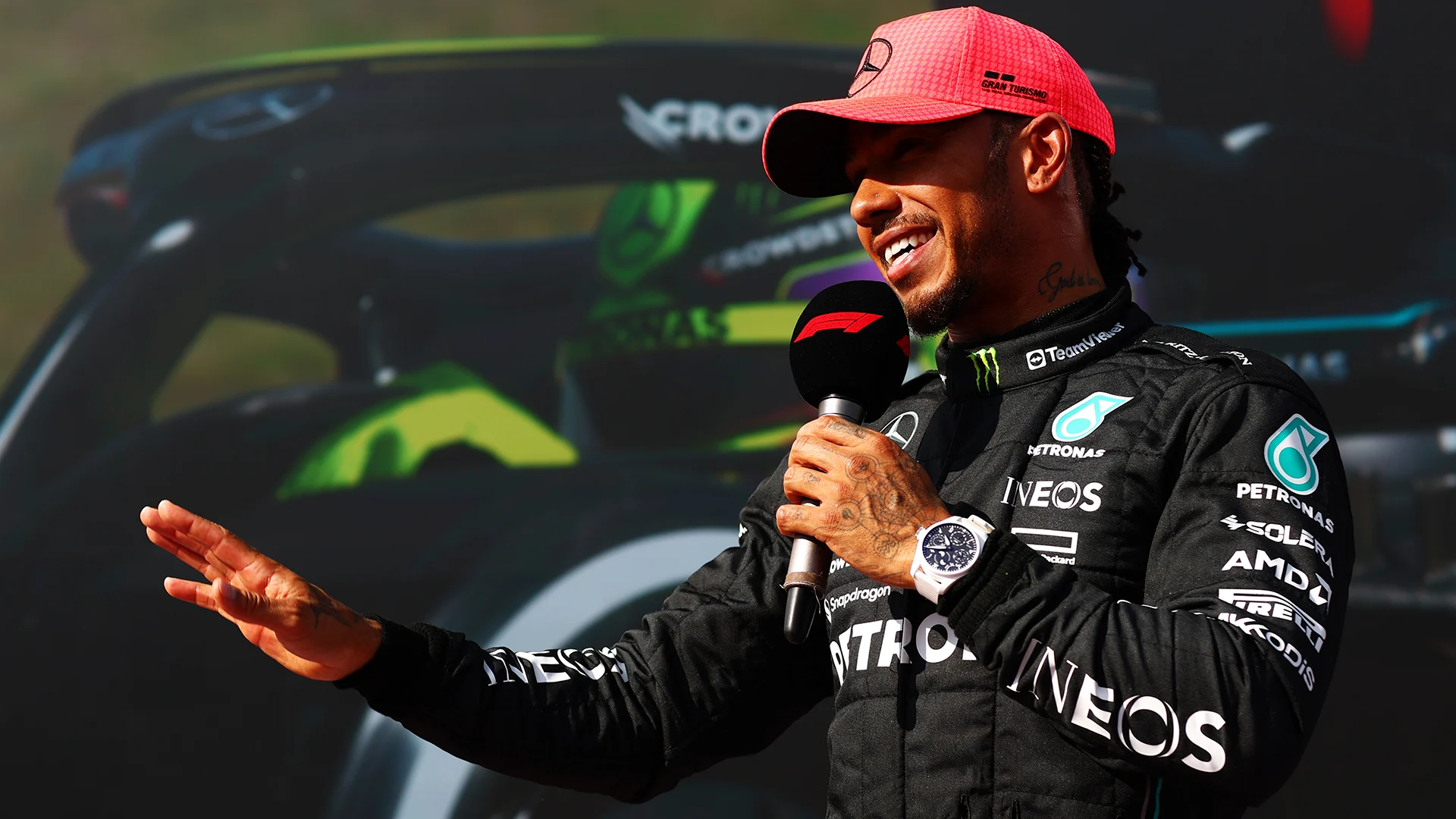 Asked if he was out of breath or just excited about the result after stepping out of his car, Hamilton said: “I think both. It’s been a crazy year-and-a-half, so I’ve lost my voice from shouting so much in the car – it’s amazing that feeling.
