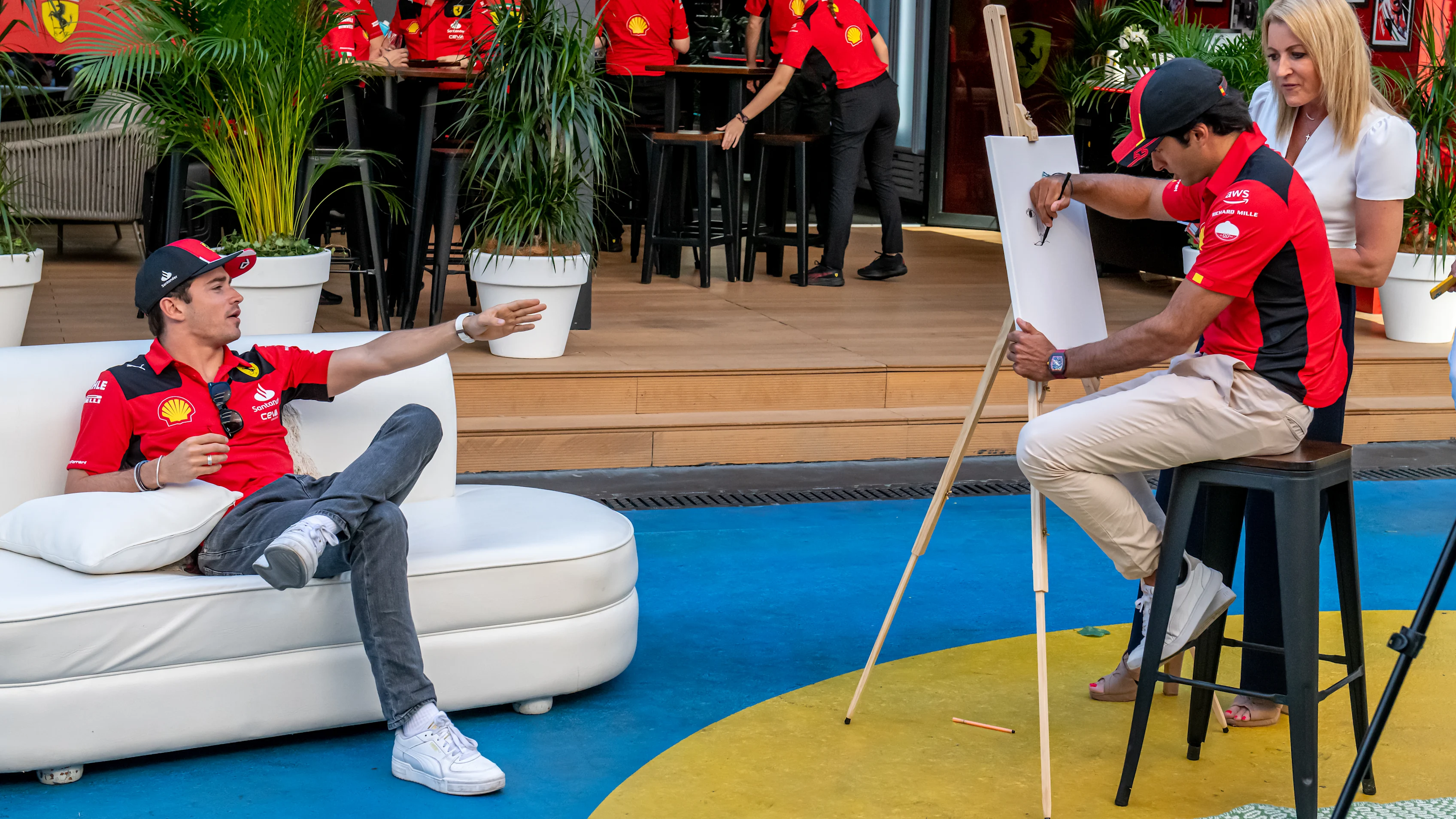 Sainz and Ferrari team mate Charles Leclerc got arty by painting each other for a Sky Sports F1 feature. Judging by Leclerc’s reaction to Sainz’s effort, perhaps the Spaniard should stick to driving...