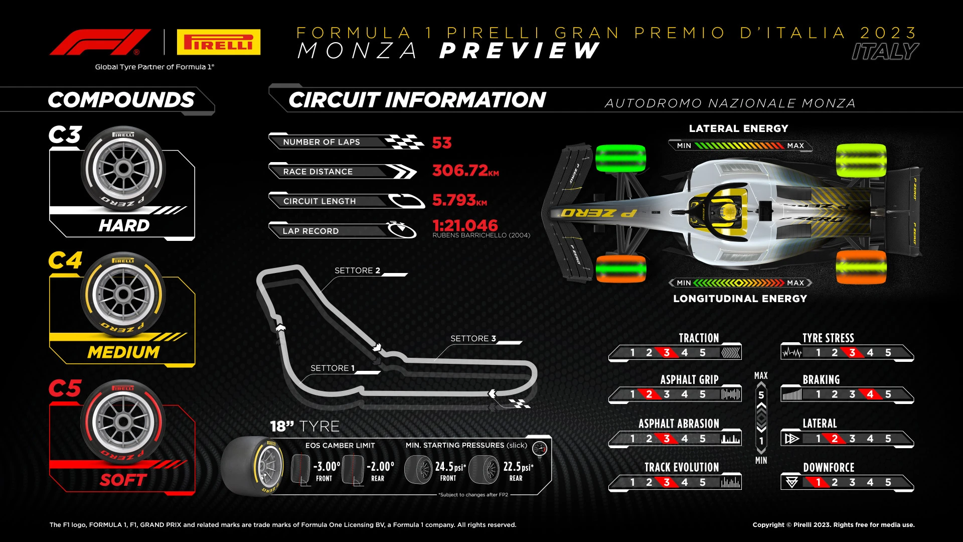With the fourth longest pit loss of the season (23.5 seconds), Monza is typically a one-stop race, although last season an early Virtual Safety Car prompted Leclerc and Ferrari to convert to a two-stop.