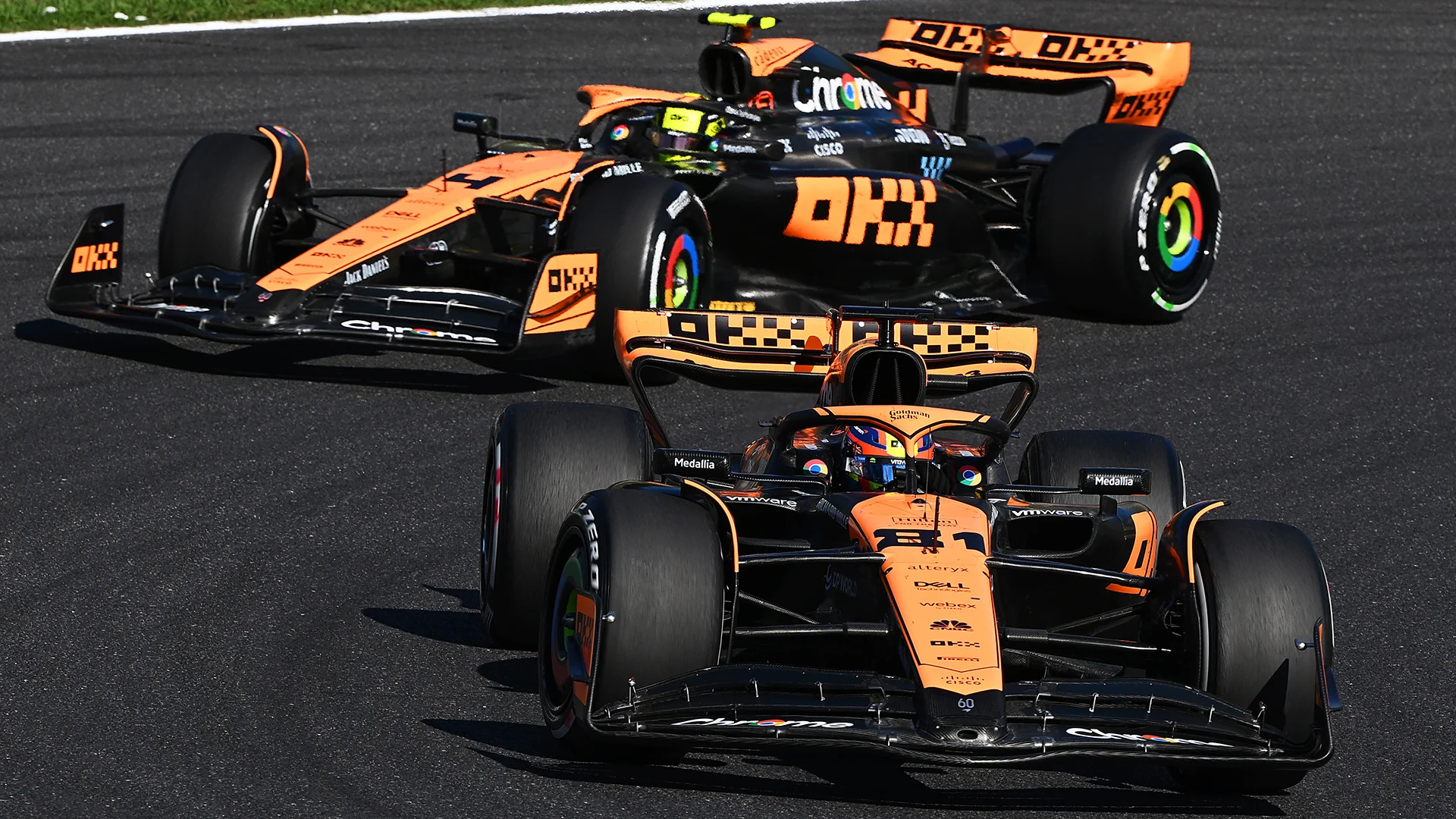 After narrowly missing out, Norris settled into P2 and Piastri into P3. Their positions changed when Piastri pitted under a Virtual Safety Car, but Norris’ strong pace after his own stop prompted McLaren to swap the pair around.