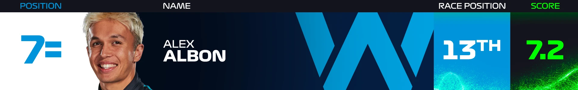 Albon failed to score points in the race for the third weekend in a row but looking at his performance, it was yet again a drive that deserved a top-10 finish, as he continues to extract the maximum from the car and with the strategy each weekend.
