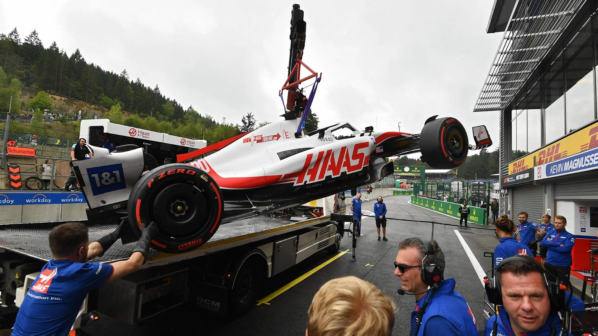 Magnussen brought out the red flags in FP1 late on, as he was ordered to stop the car. A battery issue was to blame, leading to a lengthy recovery. The team did well to repair that and get him back out for the start of FP2. As for Schumacher, he skated off into the gravel as the rain began to fall late on, doing well to keep his VF-22 out of the barriers.
