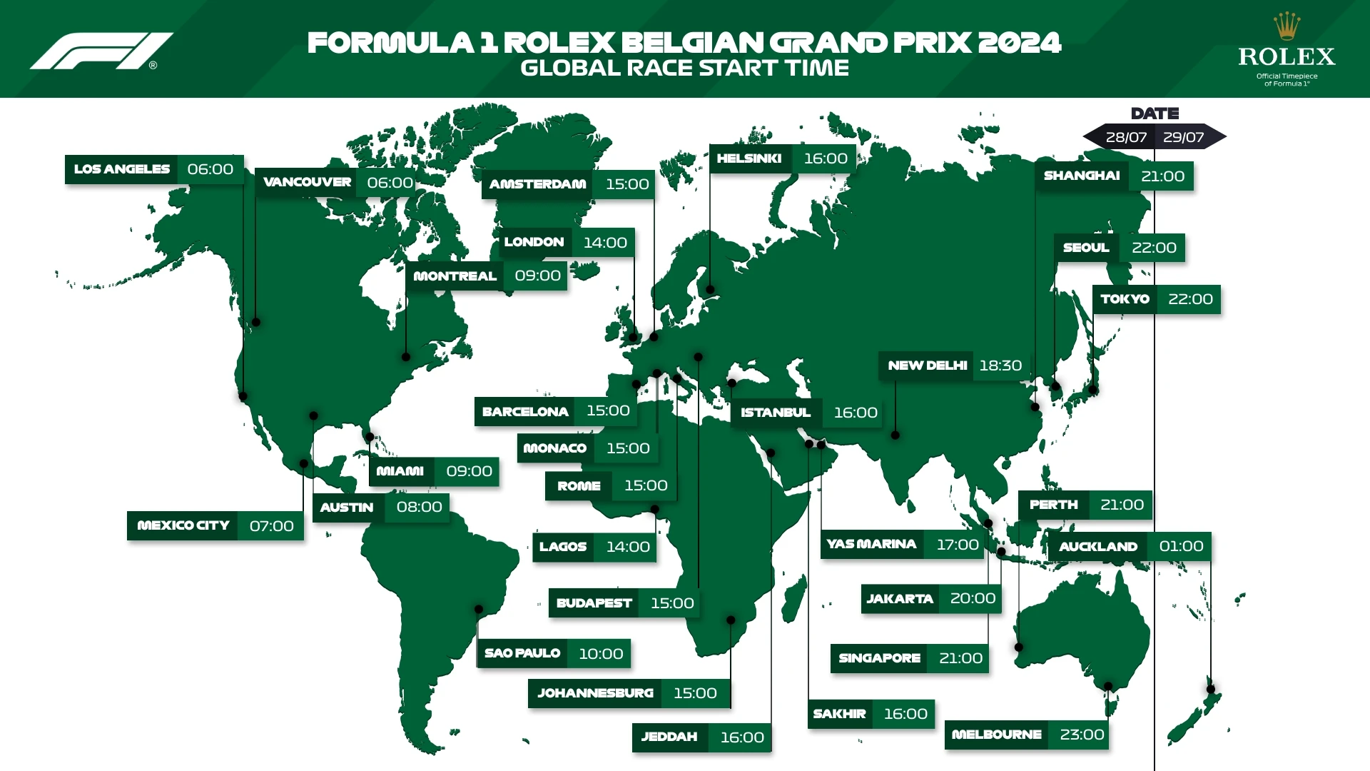 The F1 drivers and teams are in Belgium for the 14th round of the 2024 season, meaning one final chance to impress before the summer break. But what time do the lights go out?