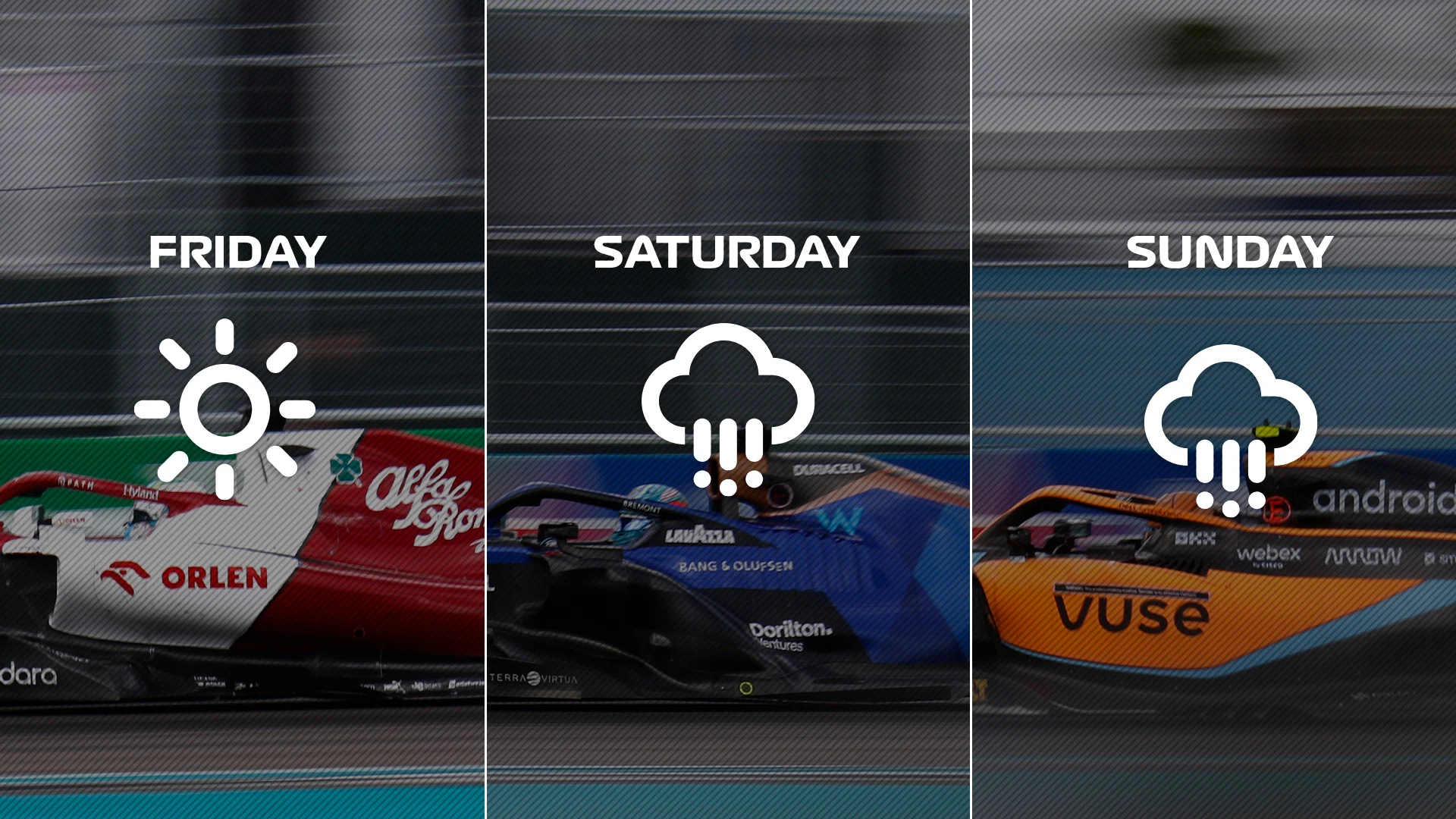 The weather forecast shows that while we can expect a dry start to the weekend, it is very possible that rain could hamper both qualifying and the race. Scroll down below for a more detailed weather forecast.