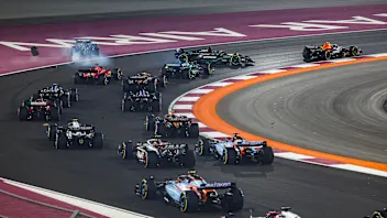 RACE START: Watch as Hamilton and Russell collide in eventful opening lap in Qatar